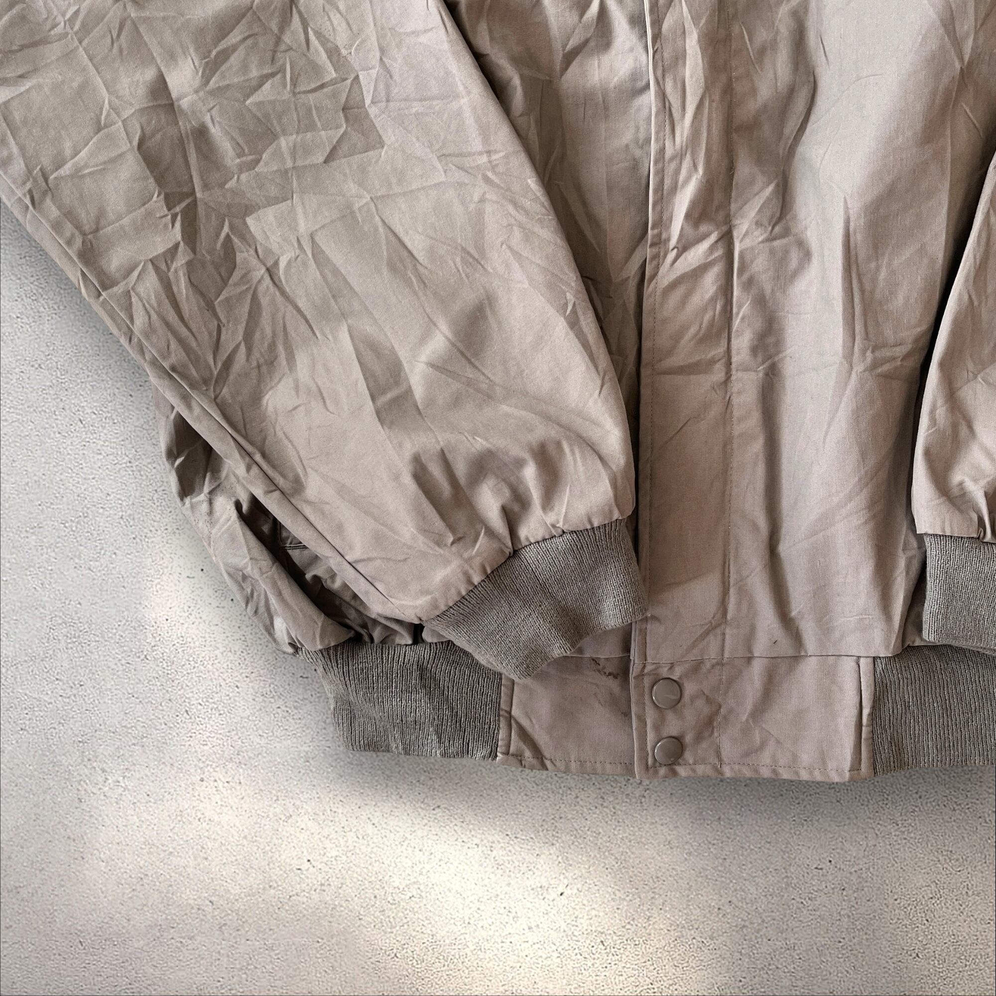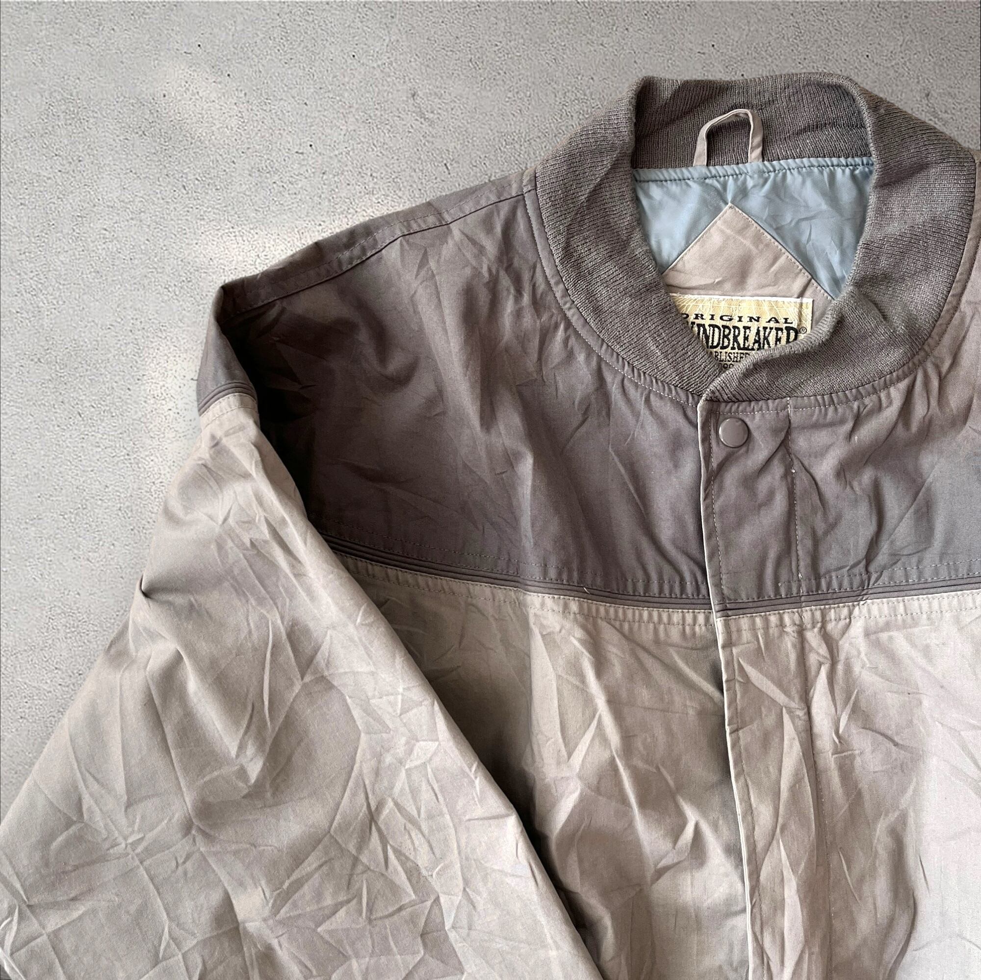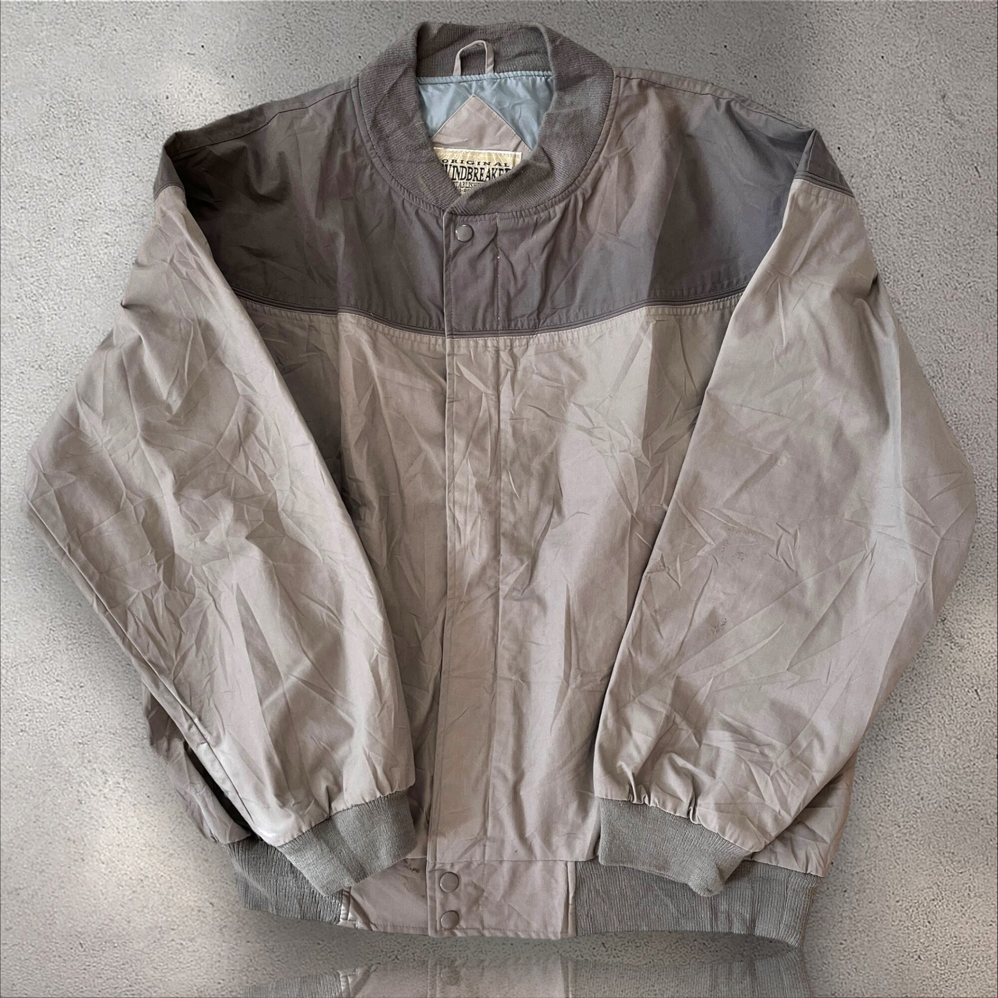 クラシックなデザインが魅力のヴィンテージウインドブレーカー。 ところどころに小さな汚れや色褪せはあるもののこのジャケットを大事に着ていた前の持ち主を感じます。 ■平置き採寸(cm) 着丈:68 肩幅:切替デザインのため採寸なし 身幅:70 裄丈:95 ■状態 色褪せあり