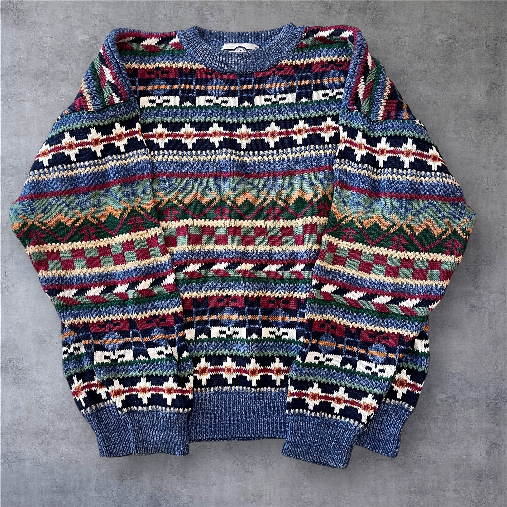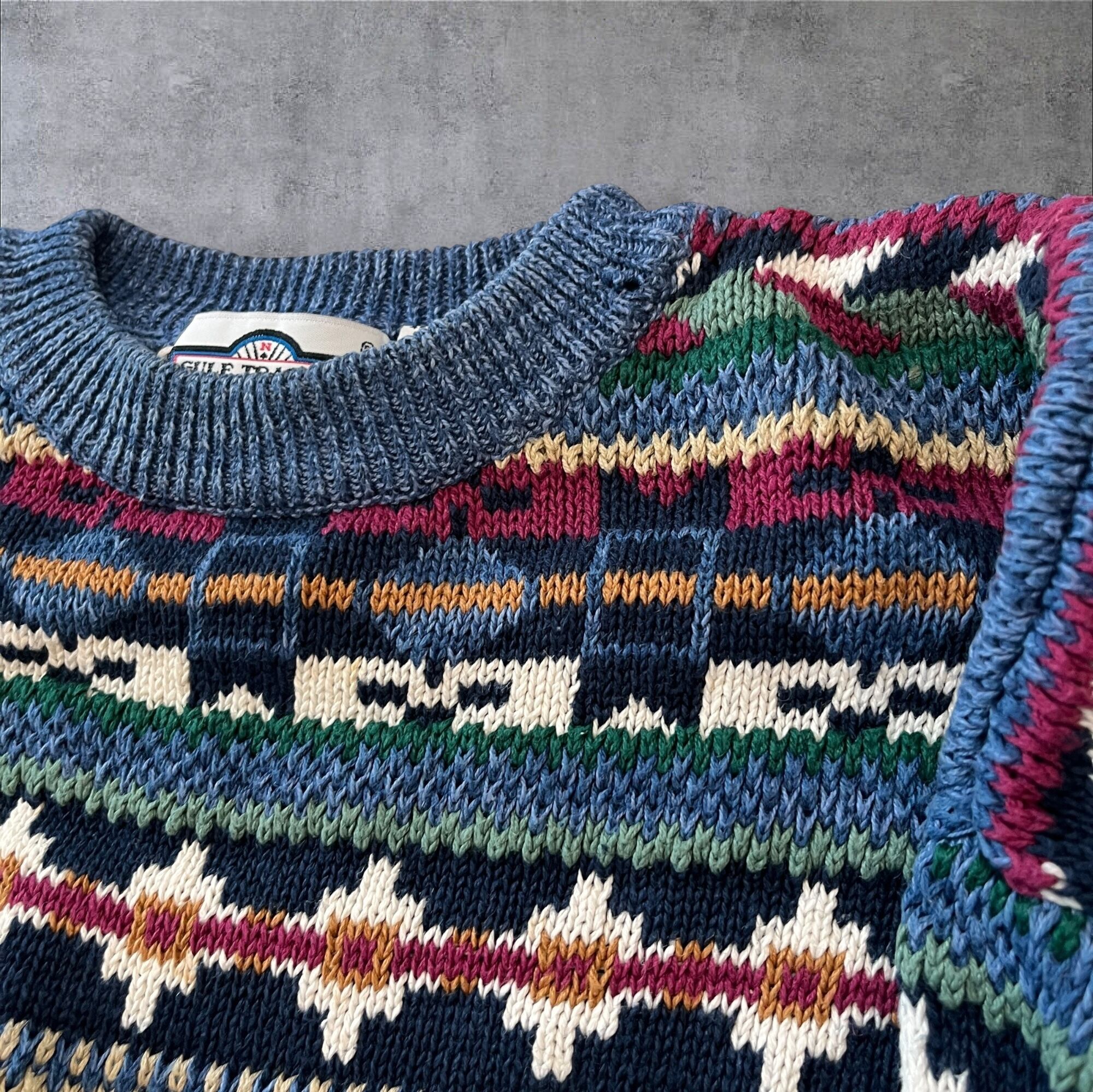 90年代頃の GULF TRADERS コットン×ラミー混ニット。 ■平置き採寸(cm) 着丈:60 肩幅:61 身幅:55 袖丈:54