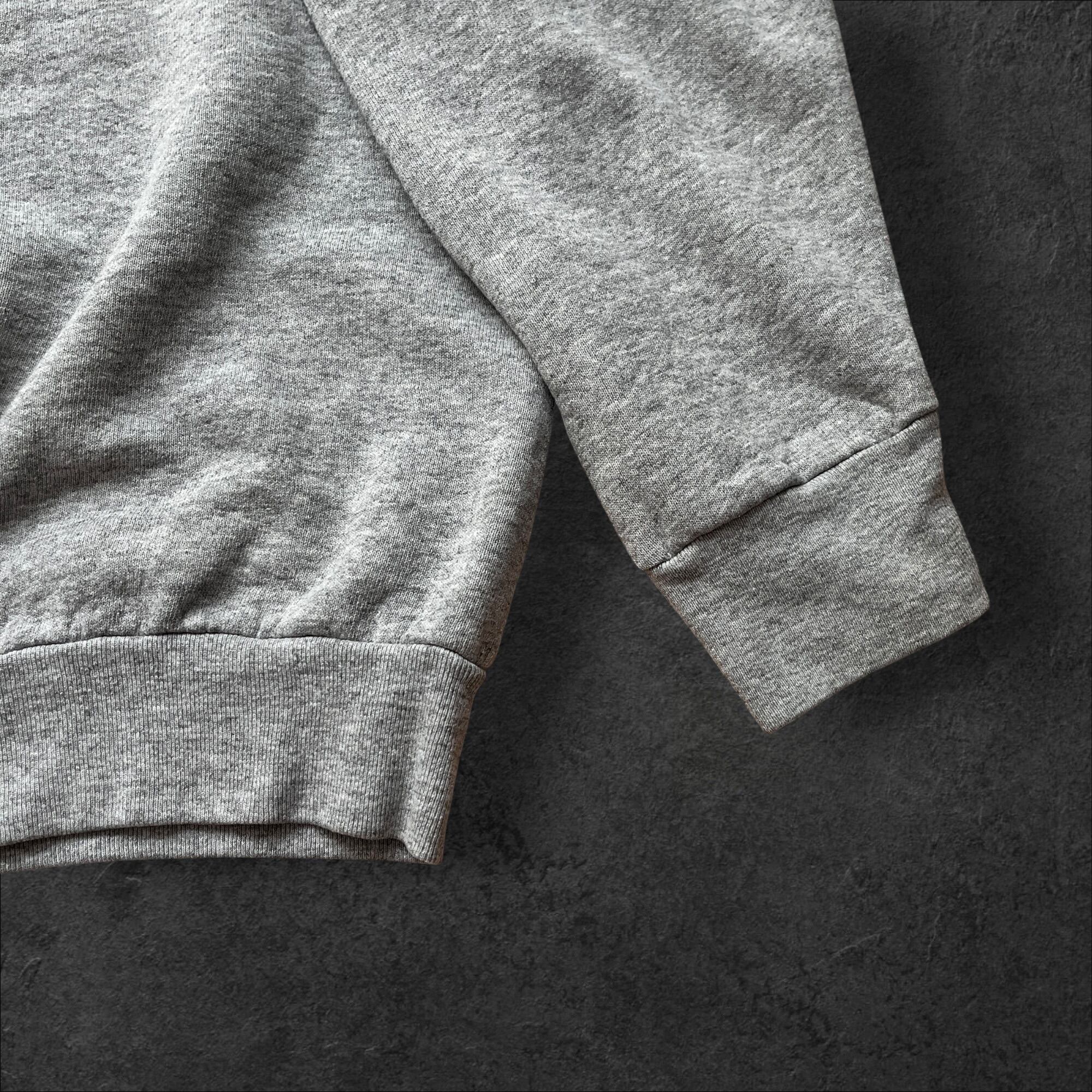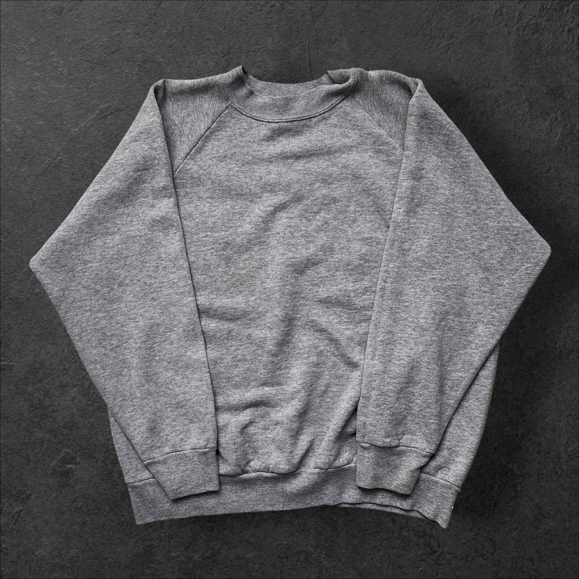 Fruit of the Loomの無地ラグランスウェット。杢グレーの合わせやすいカラーで、1枚でもインナーでも使いやすいベーシックな1着です。推定90年代後半〜2000年代前半頃。 ■平置き採寸(cm) 裄丈:77.5 身幅:58 着丈:55.5 ■状態 胸付近に薄汚れアリ